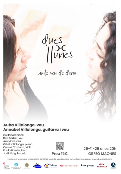Maó, 29 de novembre de 2025. L’Orfeó Maonès acull aquest dissabte DUES LLUNES – Amb veu de dona, un espectacle musical que reuneix talent femení d’arreu de l’illa en una vetllada creada per celebrar la força creativa de les dones en la música contemporània.