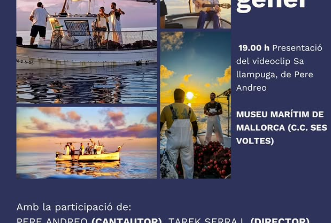 Palma, 29 de gener de 2026. El Museu Marítim de Mallorca, al C.C. Ses Voltes, acull aquest vespre la presentació de Sa llampuga, el nou videoclip del cantautor Pere Andreo, una obra audiovisual que connecta música, memòria i oficis tradicionals vinculats a la mar.