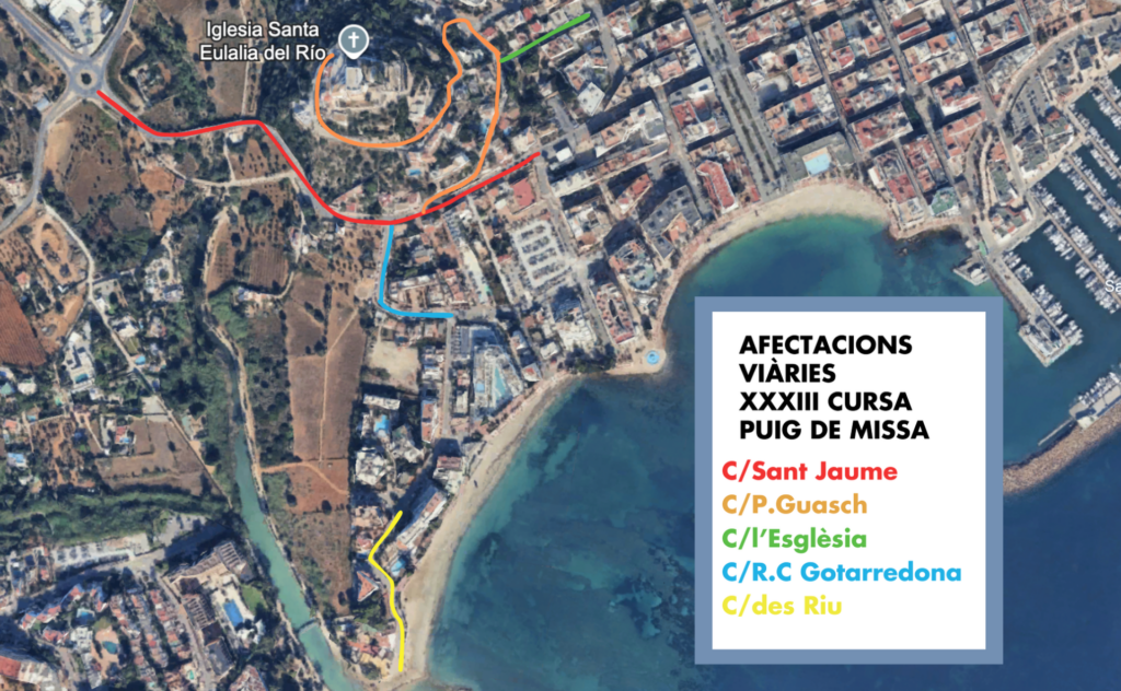 Amb motiu del desenvolupament de les curses, es produiran afectacions puntuals al trànsit en diverses vies del municipi, amb talls temporals als carrers des Riu, R.C. Gotarredona, carrer de l’Església, Pere Guasch i un tram del carrer Sant Jaume. També es podran aplicar restriccions puntuals d’estacionament per garantir la seguretat i el bon funcionament de l’esdeveniment.