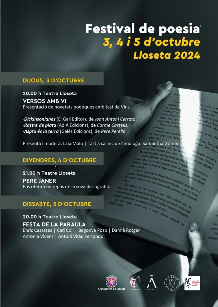 El Festival de Poesia 2025 és una iniciativa de l’Àrea de Cultura de l’Ajuntament de Lloseta amb la col·laboració del Teatre Lloseta, el Consell de Mallorca, Vinamica, l’Associació d’Escriptors en Llengua Catalana i Cas Comte.
