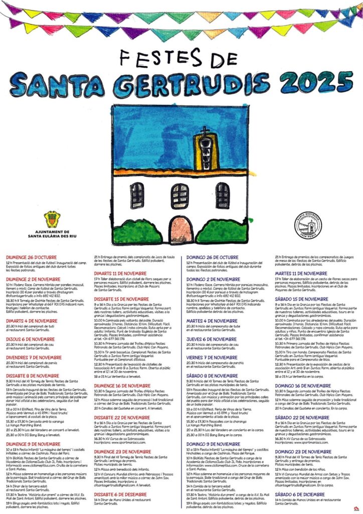 Santa Gertrudis, 9 de novembre de 2025. El pintoresc poble de Santa Gertrudis de Fruitera es prepara per viure les seves festes patronals, que enguany arriben amb una programació plena d’activitats per a totes les edats. Des de finals d’octubre fins al 6 de desembre, veïns i visitants podran gaudir de més de 30 propostes que combinen gastronomia, música, esport i cultura popular.